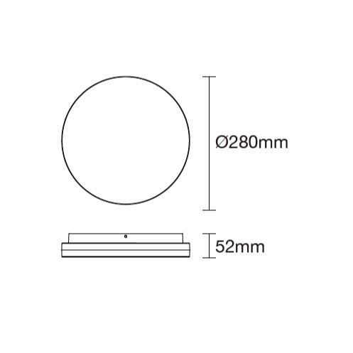 Plafoniera, montaggio superficiale, ON/OFF, con emergenza, D280*52mm, switch di potenza 8,5W/15W, 1050/1850lm, 120lm/W a 15W a 4000K, (95lm/W a 4000K quando la batteria e in carica), switch 3CCT 2700K/3000K/4000K (interruttore interno), potenza di emergenza 1,5W, flusso luminoso di emergenza 200lm, 220-240V, IP54, IK08, BA115?, SDCM<4 a 2700K e 4000K, SDCM<6 a 3000K, UGR<26, 50000H (50 000hL80B10 per LED, 50 000h per driver), 5 anni di garanzia (2 anni per batteria), driver integrato Seatronic, LED Bridgelux SMD 2835, Classe II, Bianco (RAL9003+Opaco), Copertura e alloggiamento in PC, 850? GWT, RG0, RA80, con terminale rapido Accessorio: 2 viti + 2 tubi di espansione + 1 chiave a brugola + 2 cuscinetti in gomma + 2 anelli in gomma + 2 fermacavi + 2 viti corte per fermacavi Certificato: CE. Pacchetto di emergenza: convertitore di emergenza SDE22, batteria LiFePO4 3,2 V 2000 mAh, durata di emergenza di 3 ore, versione autotest