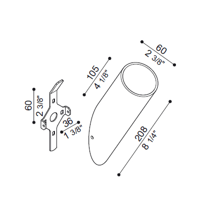 Braccetto diametro 60 mm in Bayblend. Completo di kit di fissaggio a parete. Inclinazione 30°. Colore: Corten.