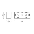 Box per montaggio sporgente a parete (non per incasso). Corpo in alluminio primario pressofuso EN-AB44100; elevata resistenza all’ossidazione grazie al trattamento di passivazione a base di zirconio e alla verniciatura con resine poliestere stabilizzata ai raggi UV.