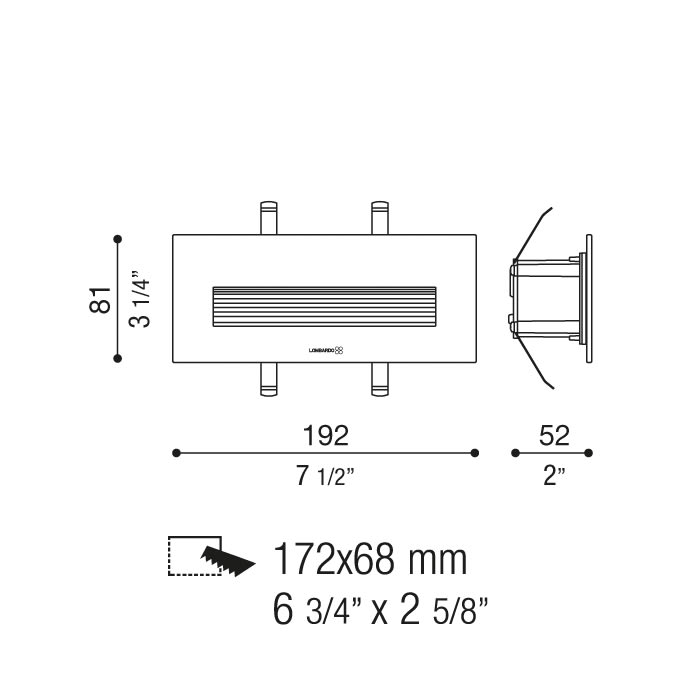 Adatto per installazioni a parete e controsoffittature in cartongesso o ad uso esterno. Corpo in alluminio primario pressofuso EN-AB44100; elevata resistenza all’ossidazione grazie al trattamento di passivazione a base di zirconio e alla verniciatura conresine poliestere stabilizzata ai raggi UV. Diffusore in vetro temprato e serigrafato. Guarnizioni in silicone. Bulloneria in acciaio inox A4 o AISI 316L. Modello brevettato.