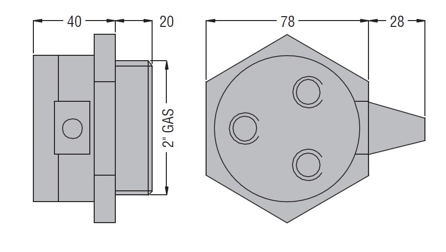 PORTAELETTRODI PS3S E' un portaelettrodi in termoindurente predisposto per tre elettrodi (elettrodi da ordinare separatamente) e completo di calotta coprimorsetti. Temperatura massima di impiego: +100°C Attacco filettato 2" GAS. Applicazioni: serbatoi.