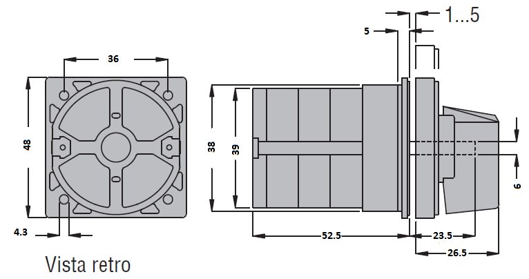 Invertitore tripolare per montaggio frontale. Elevata durata elettrica e meccanica. Contatti a doppia interruzione in lega d'argento. Apertura positiva dei contatti NC secondo le norme IEC/EN 60947-5-1. Grado di protezione IP40 (mostrina frontale), IP00 (contatti).