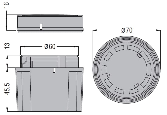 Modulo di cablaggio e coperchio (ingresso lato inferiore). Per tubi plastici.