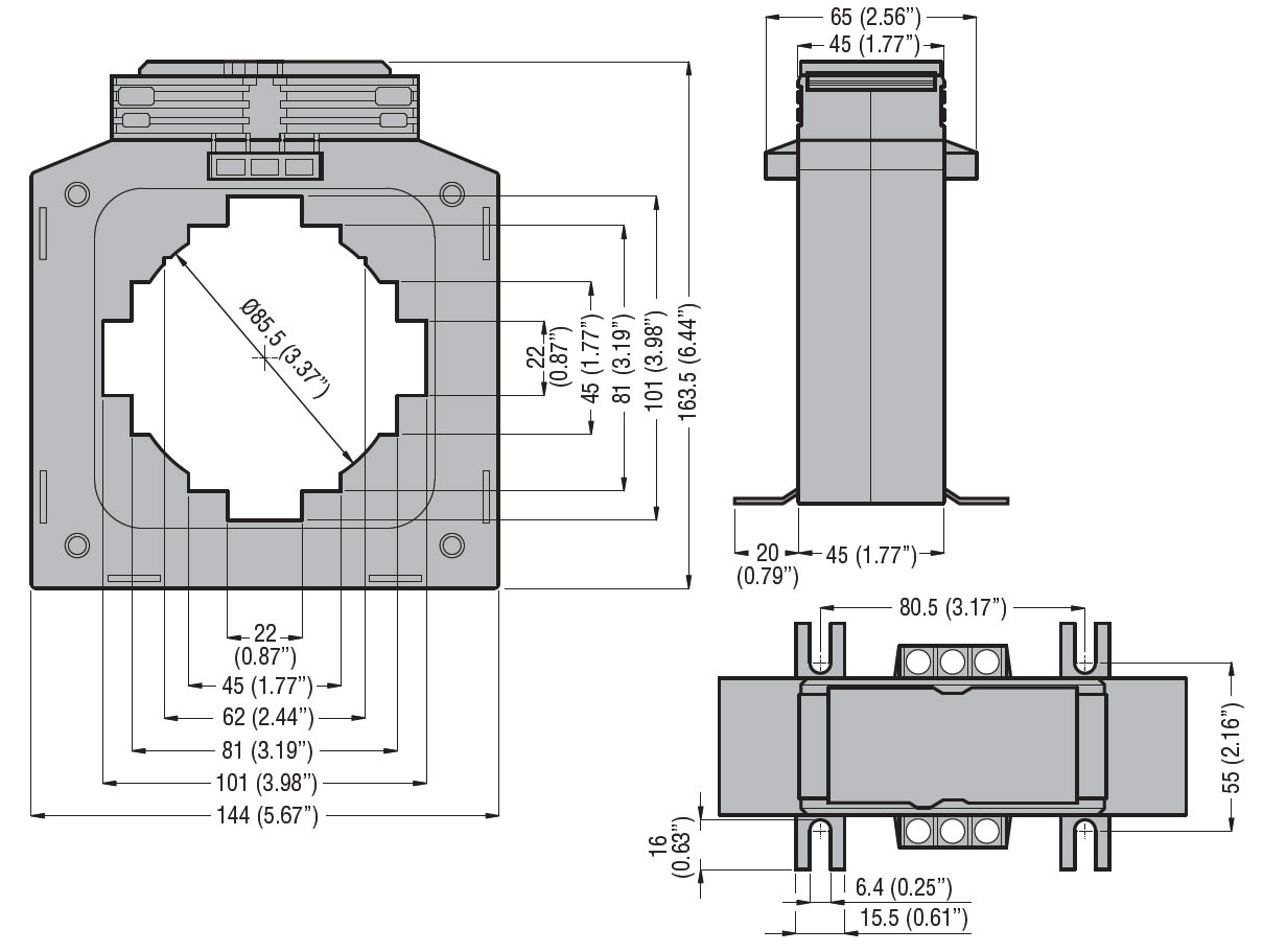 TRASFORMATORE DI CORRENTE, TIPO PASSANTE DI PRECISIONE, PER CAVO Ø66MM. PER BARRE DA 100X20MM, 80X45MM, 1000A.