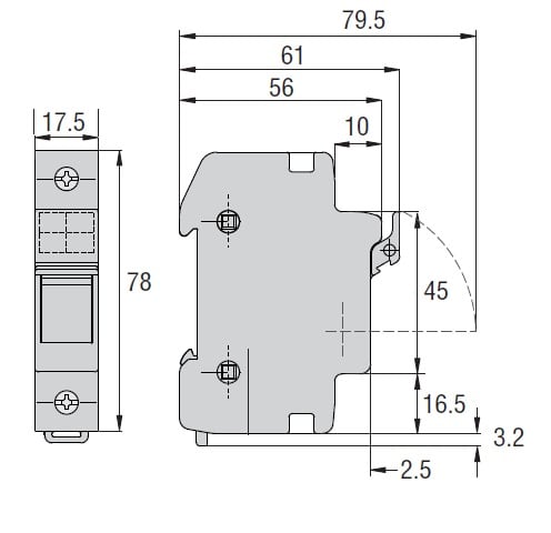 BASE PORTAFUSIBILI, PER FUSIBILI 10X38MM. CORRENTE NOMINALE 32A (690VAC), 1P. SENZA INDICATORE LUMINOSO. 1 MODULO
