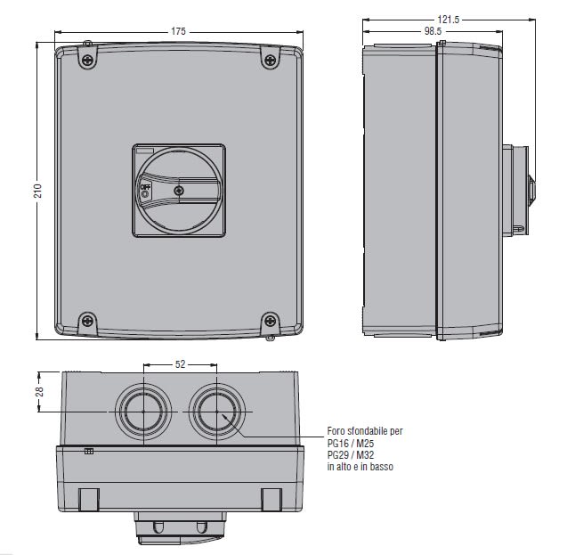 CONTENITORE VUOTO TIPO IEC/EN IP65, PER INTERRUTTORI SEZIONATORI. CON MANIGLIA GIALLO/ROSSA, PER GA063 SA, GA063 A...GA100 A