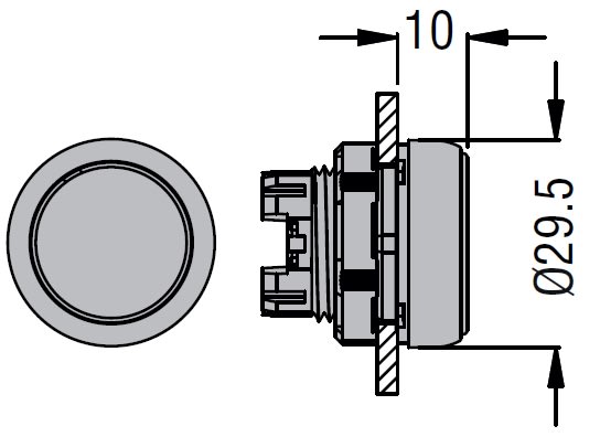 Pulsante rasato ad impulso con simbolo "I", è ammessa qualsiasi posizione di montaggio, realizzato in poliammide. Si aggancia su foro Ø 22mm mediante ghiera filettata. Durata meccanica: 5.000.000 cicli