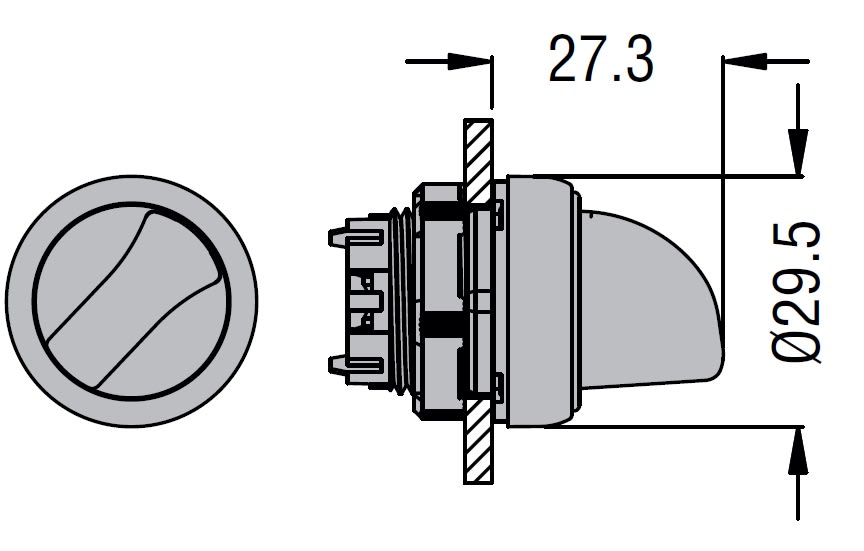 Selettore a leva luminoso a 3 posizioni, è ammessa qualsiasi posizione di montaggio, realizzato in poliammide. Si aggancia su foro Ø 22mm mediante ghiera filettata. Durata meccanica: 1.000.000 cicli