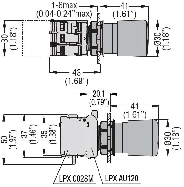 Elemento di contatto diametro 22mm serie platinum, 2NC. Contatti ad auto-monitoraggio solo per pulsanti a fungo ad aggancio non luminosi. Attacchi a vite.