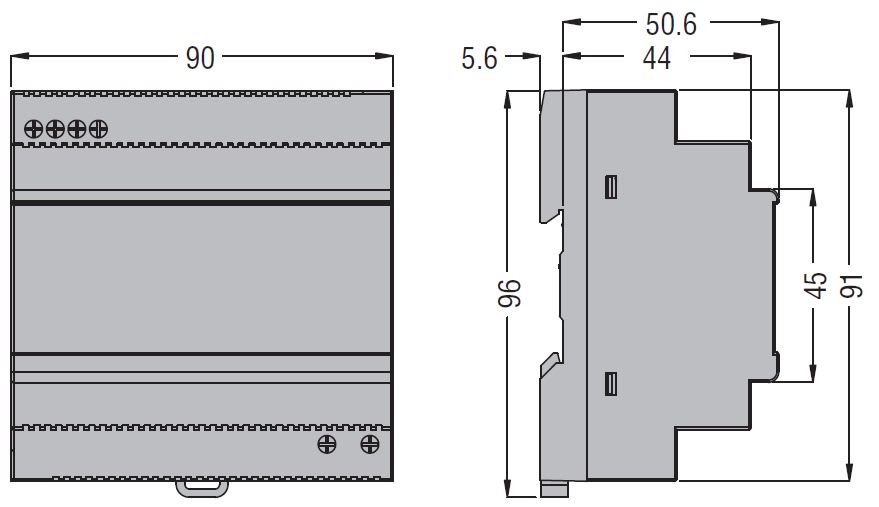 Alimentatore switching modulare, destinato al mondo dell'automazione industriale e civile. Dimensioni compatibili con centralini di tipo modulare, contenitore in materiale plastico che li rende utilizzabili nelle installazioni in building automation oltre che nelle applicazioni di automazione industriale. Protezioni contro cortocircuito, sovraccarico, picchi di tensione in ingresso. Segnalazioni tramite LED per tensione troppo bassa e presenza alimentazione.