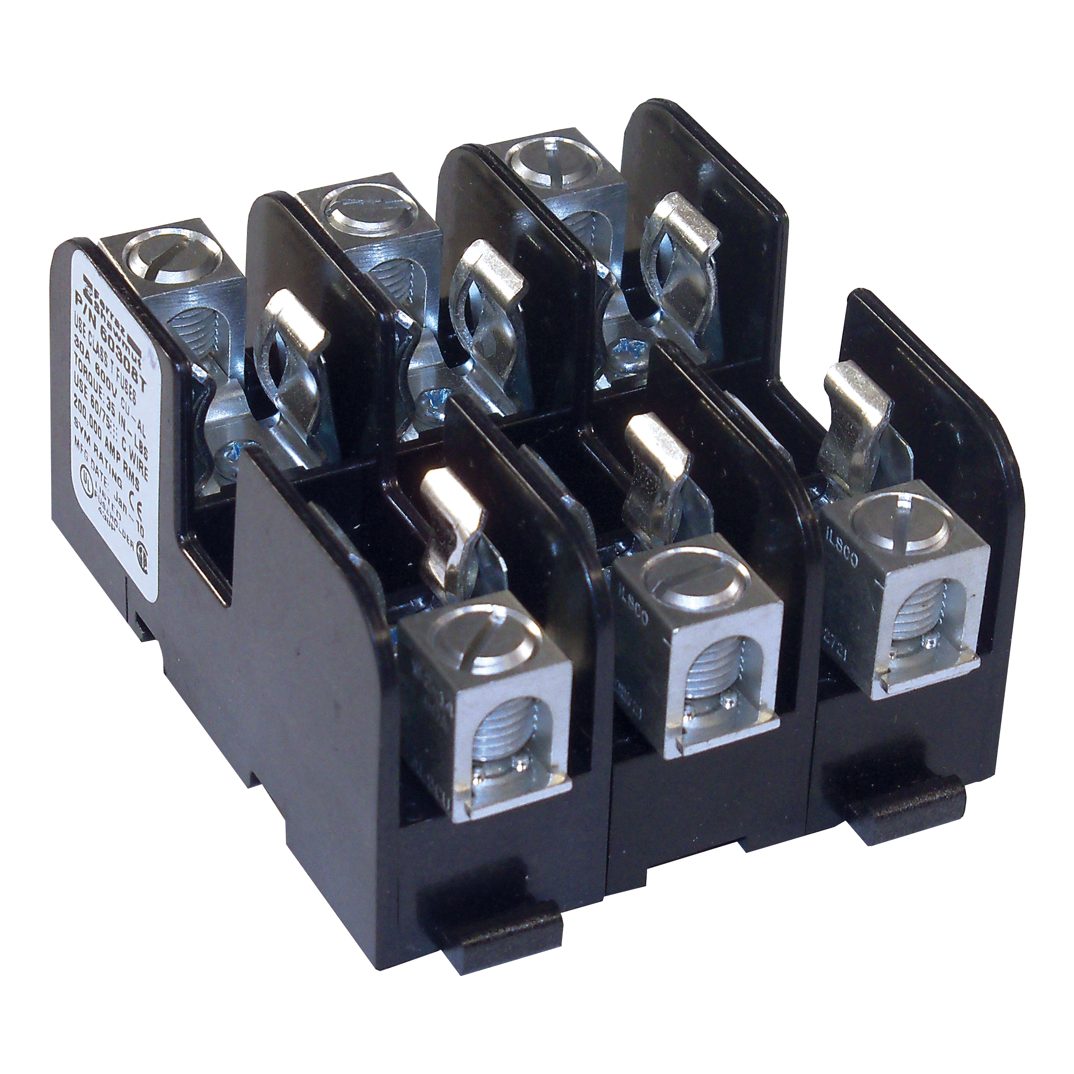 I blocchi di fusibili Mersen Classe T sono compatibili con i fusibili di Classe T fino a 600A. I separatori sono realizzati in policarbonato caricato con fibre di vetro (GFPC) o fenolo e possiedono una rigidita dielettrica verificata superiore a 2500V. Mersen e lunico produttore a offrire blocchi di Classe T con connettori in rame.
