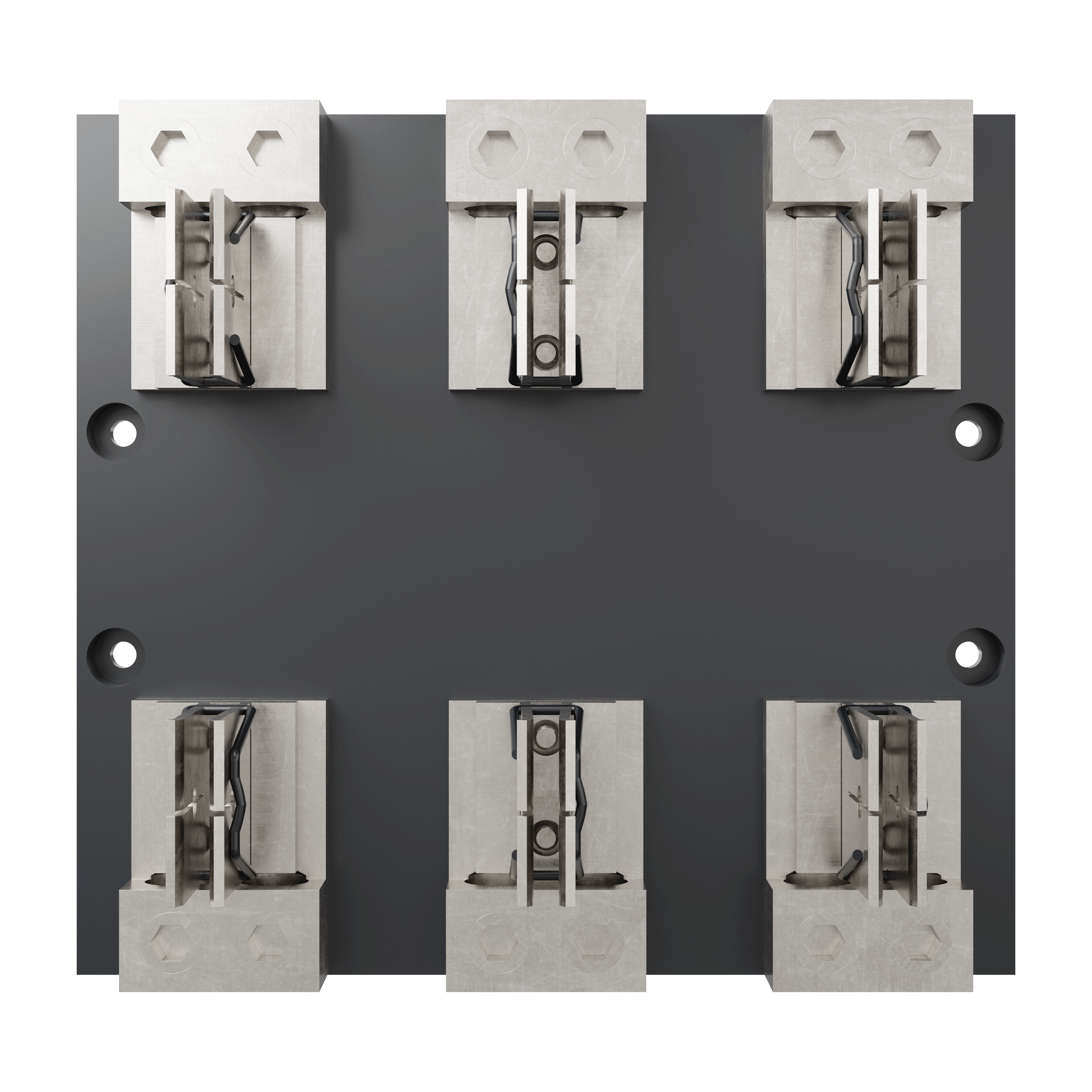I connettori Mersen si adattano a unampia gamma di conduttori in rame o alluminio, a trefoli o solidi. Gli isolanti sono stampati in policarbonato riempito di vetro (GFPC) o fenolico con una rigidita dielettrica verificata superiore a 2500V. Tutti i morsetti per fusibili sono realizzati in rame stagnato ad alta conducibilita e progettati specificamente per fusibili di classe J a lamelle da 200-600A.