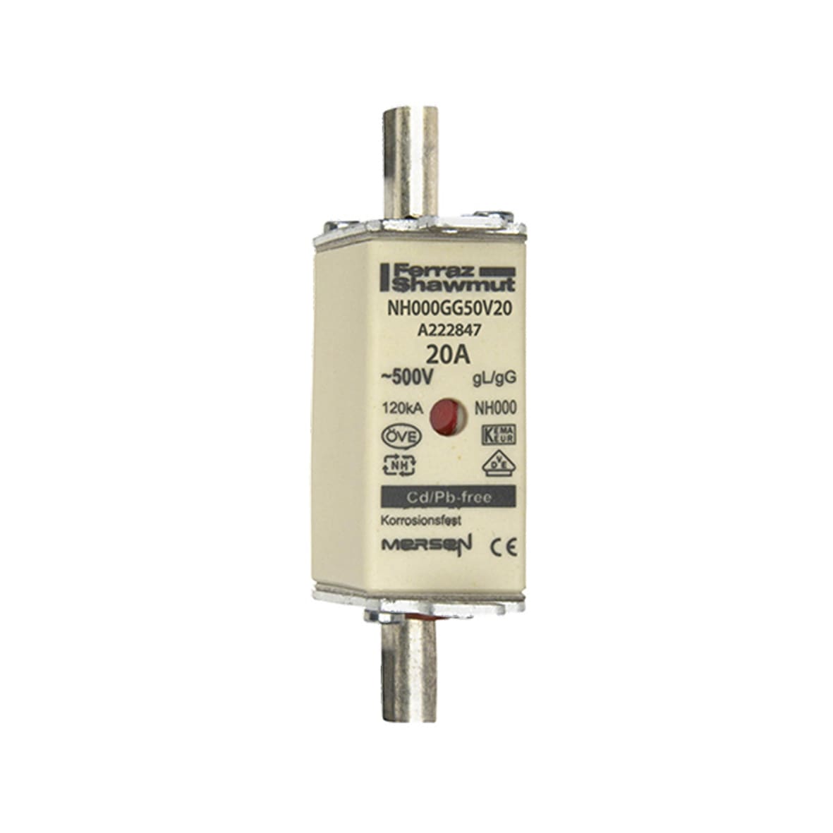 Fusibile NH, marca MERSEN ITALIA SPA, modello XESA222847 - FUS. NH BT TAGLIA 000 - 500VAC GG 20A