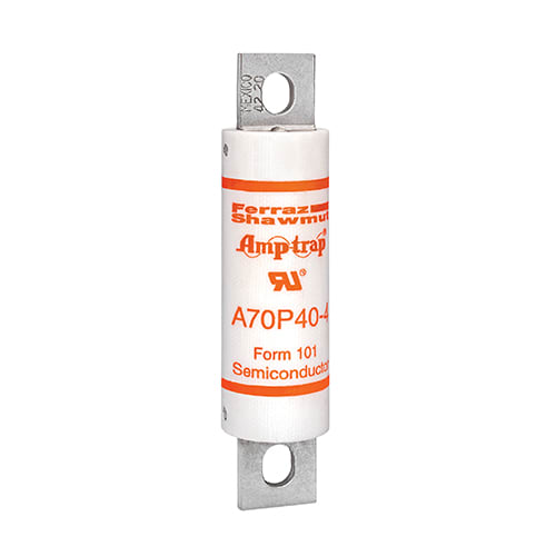 I fusibili rapidi A70P Amp-Trap® Form 101 sono stati sviluppati per sistemi UPS, azionamenti c.a. e sistemi UPS in alta tensione, sistemi di avviamento dei motori in tensione ridotta e applicazioni simili che richiedono un l2t più basso e unaffidabilità superiore. A70P è un fusibile molto diffuso, disponibile in unampia gamma di valori nominali. Normalmente, è utilizzato per la sostituzione.