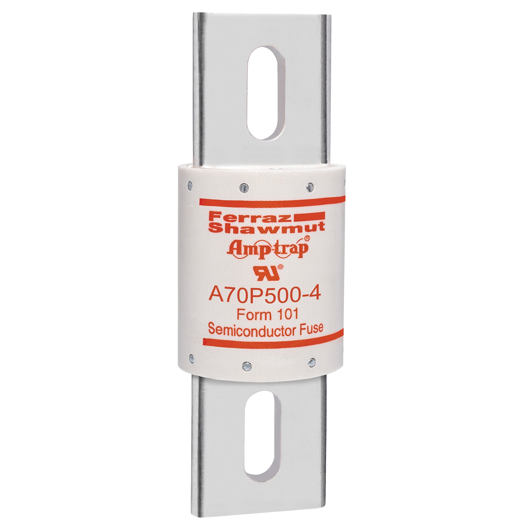 I fusibili rapidi A70P Amp-Trap® Form 101 sono stati sviluppati per sistemi UPS, azionamenti c.a. e sistemi UPS in alta tensione, sistemi di avviamento dei motori in tensione ridotta e applicazioni simili che richiedono un l2t più basso e unaffidabilità superiore. A70P è un fusibile molto diffuso, disponibile in unampia gamma di valori nominali. Normalmente, è utilizzato per la sostituzione.