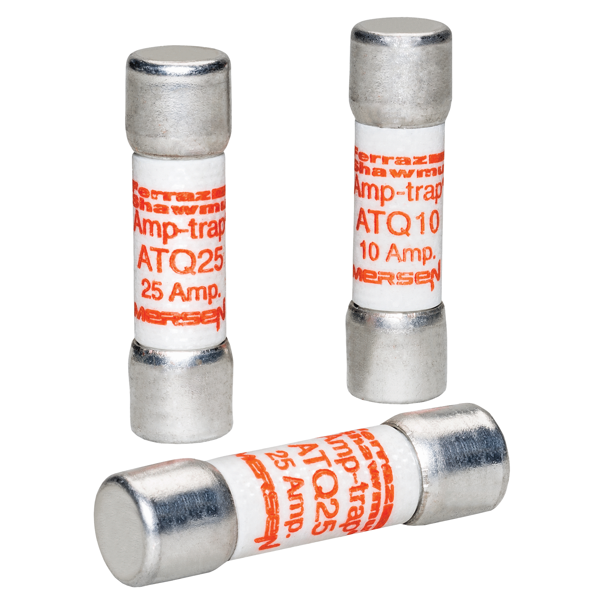 I fusibili Amp-Trap ATQ Midget ritardati hanno una tensione nominale di 500VAC e potenze amperometriche di 42 ampere da 1/10 a 30A. Sono una scelta eccellente per la protezione supplementare di circuiti in cui la corrente di corto circuito non supera 10.000A. (Non destinati alla protezione dei circuiti derivati)