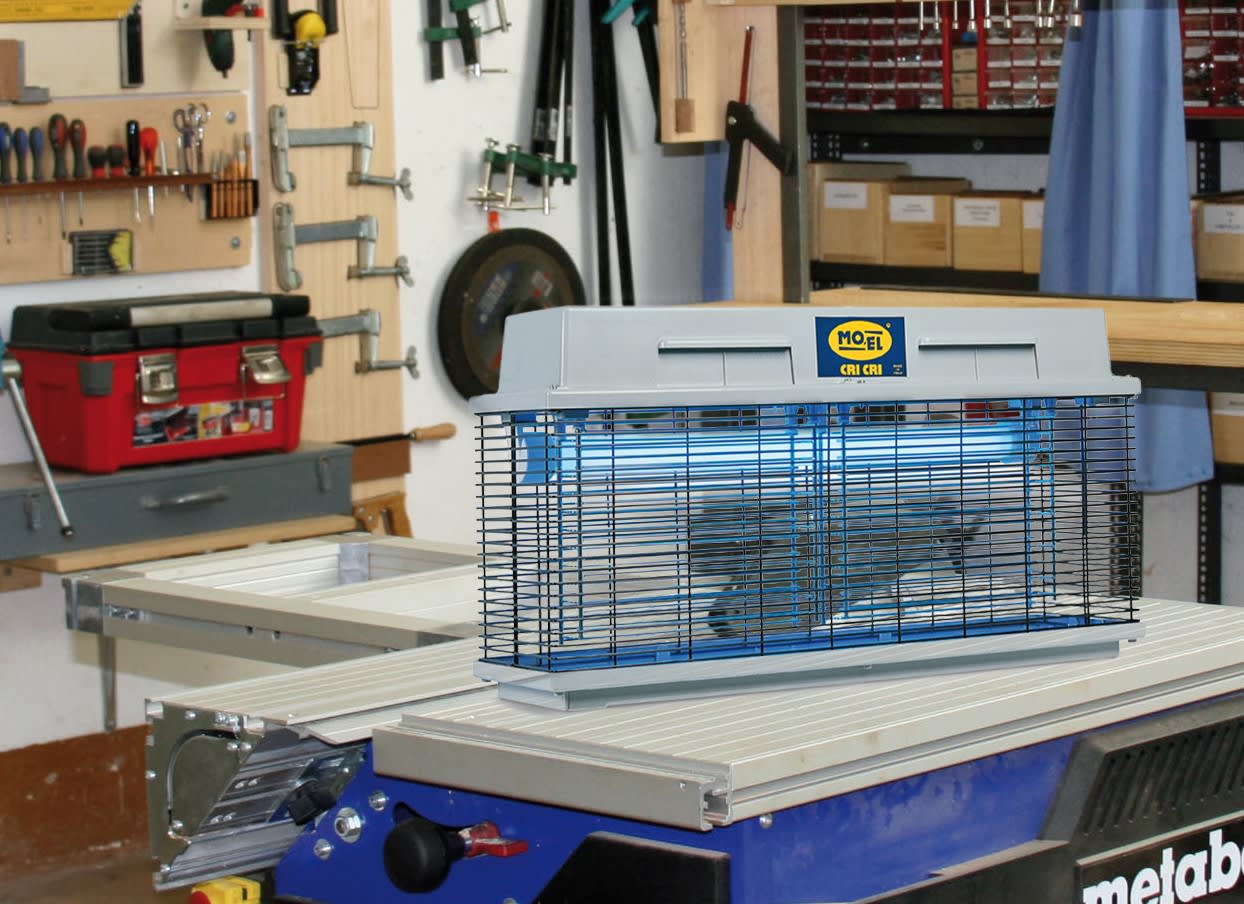 Questo modello di zanzariera elettrica fa parte della serie professionale della linea MO-El. STRUTTURA Robusto e resistente, il modello assicura una qualità inalterata nel tempo ed è coperto da una garanzia MO-EL di 2 anni, ad esclusione delle lampade che devono essere annualmente sostituite. LAMPADE La luce UV-A di lunghezza d’onda 315-400 nm non risulta visibile all’occhio umano, ma viene percepita da molte specie di insetti che la utilizzano per orientasi in volo. Le 2 potenti lampade UV-A di 20 W generano un’emissione luminosa di 40W per un raggio d’azione di 12-15 m. SICUREZZA Assolutamente igienico e sicuro, questo modello è approvato da IMQ in classe IPX4. Protetto contro l’acqua, adatto e sicuro per essere installato all’esterno in modo permanente. Le griglie e le parti plastiche sono testate contro l’ossidazione (Prova ai vapori salini), tutta la carrozzeria è testata per durare sia in condizioni di estremo calore e aridità che per resistere al freddo. Le griglie mantengono la loro efficienza nel tempo perché la scarica ad alta tensione e le bacchette elettrificate distanziate fanno sì che non si sporchino. Costruito in plastica auto-estinguente. Funzione: Approvato per essere usato all'aria aperta, non teme la pioggia. Posizionato a terra è efficace anche contro la zanzara tigre (aedes abopictus). Cattura i Ditteri (Diptera) come per esempio le aedes, e le anopheles. Efficace anche contro le mosche. Raccomandato per: Controllo insetti in aree ampie, sia al chiuso che all'esterno. Il prodotto più usato all'aria aperta.