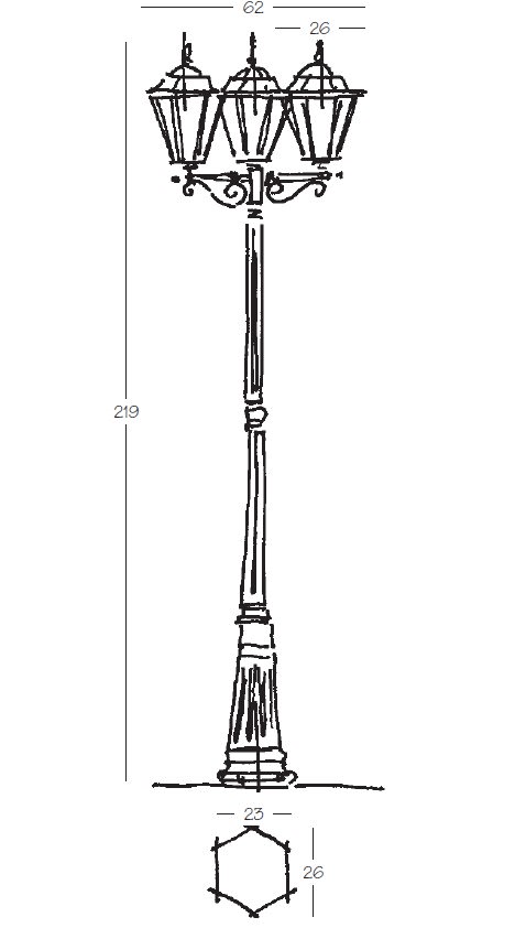 NOBILE ITALIA - NOB2002/11/NE LAMPIONE TRE LUCI ESAGONALE MEDIA NE