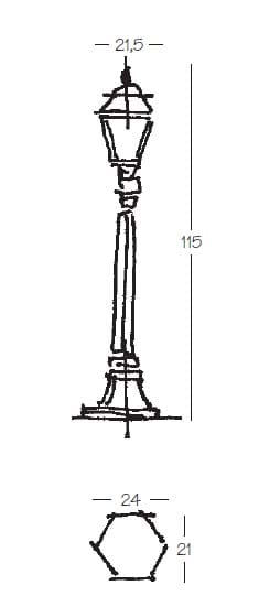 Pressofusione di alluminio. Diffusore: Glass Satinato, Trasparente (versione standard). Specifiche elettriche: 23W E27, 100W E27.
