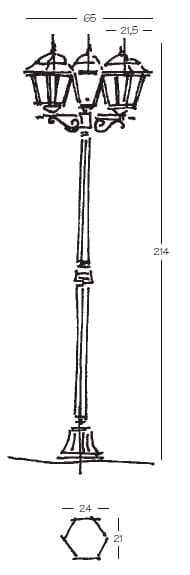 Pressofusione di alluminio. Diffusore: Glass Satinato, Trasparente (versione standard). Specifiche elettriche: 23W E27, 100W E27.