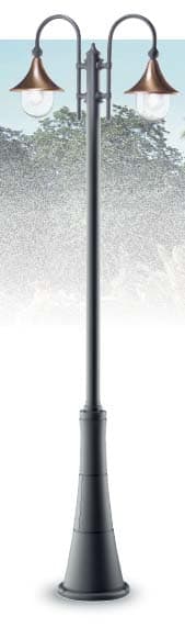 Pressofusione di alluminio. Diffusore: Policarbonato Opale, Trasparente (versione standard). Specifiche elettriche: 20W E27, 75W E27.