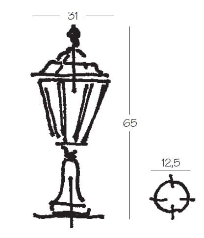 Pressofusione di alluminio. Diffusore: Glass Satianto, Trasparente (versione standard). Specifiche elettriche: 23W E27, 100W E27.