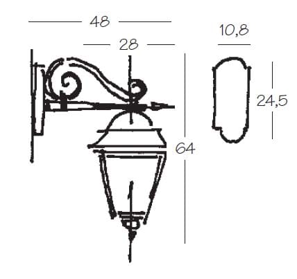 Pressofusione di alluminio. Diffusore: Glass Satianto, Trasparente (versione standard). Specifiche elettriche: 23W E27, 100W E27.