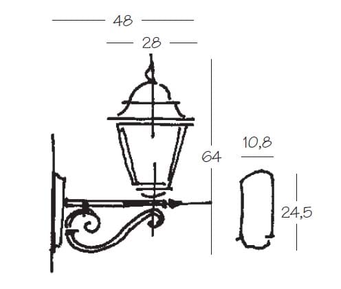 Pressofusione di alluminio. Diffusore: Glass Satianto, Trasparente (versione standard). Specifiche elettriche: 23W E27, 100W E27.