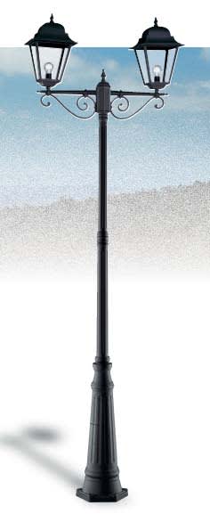 Pressofusione di alluminio. Diffusore: Glass Satinato, Trasparente (versione standard). Specifiche elettriche: 23W E27, 100W E27.