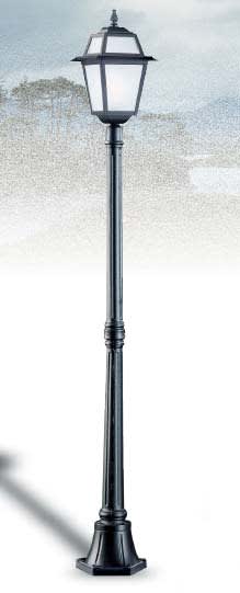 Pressofusione di alluminio. Diffusore: Glass Satinato, Trasparente (versione standard). Specifiche elettriche: 23W E27, 100W E27.