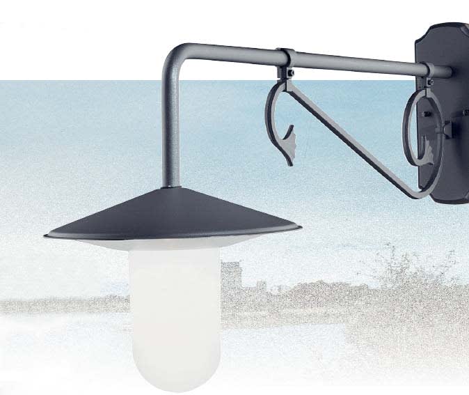Pressofusione di alluminio. Diffusore: Policarbonato Trasparente, Opale (versione standard). Specifiche elettriche: 60W E27, 23W E27.