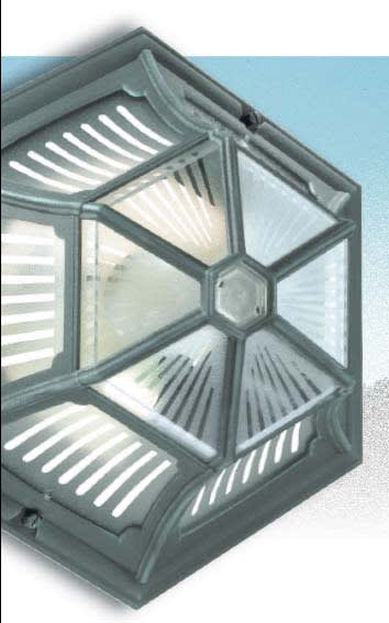 Pressofusione di alluminio. Colori struttura: Nero Verde. Diffusore: Policarbonato. Specifiche elettriche: 100W E27, 23W E27.