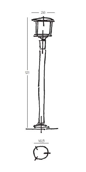 Pressofusione di alluminio. Diffusore: Policarbonato opale, Trasparente (versione standard). Colori struttura: nero, verde scuro, bianco panna. Specifiche elettriche: 23W E27, 100W E27.