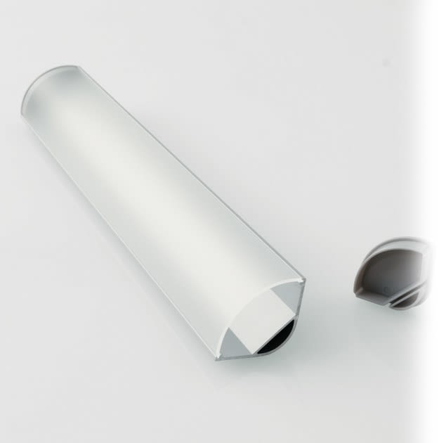 Profilo in alluminio angolare per striscia LED con diffusore trasparente di 2m. Emissione luce a 45°. Tappi inclusi. Forare il profilo per il fissaggio a parete.