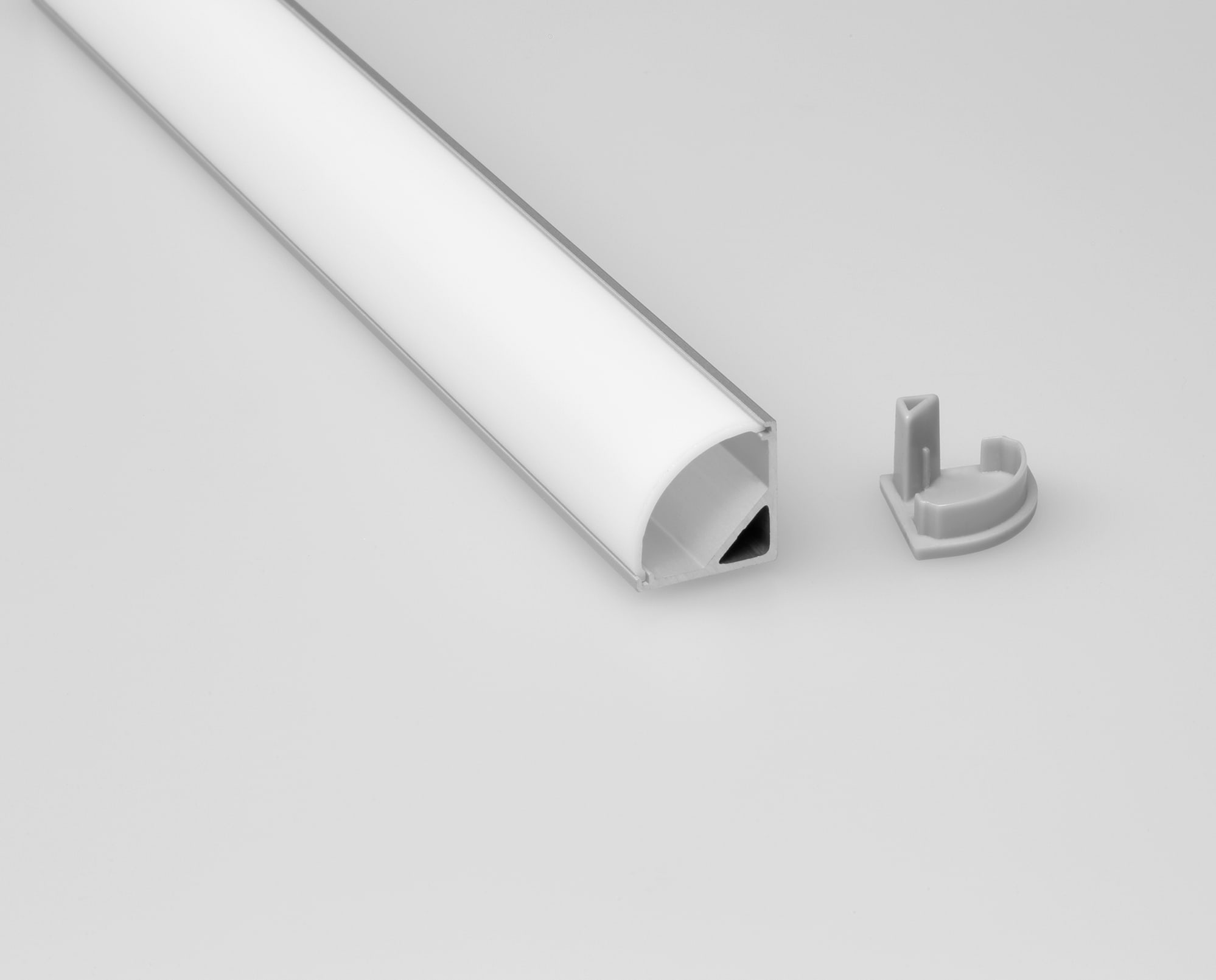 BARRA/STRIP/22/S - Profilo in alluminio angolare per striscia LED con diffusore opale di 2m. Emissione luce a 45°. Tappi (4 pz) e clip di fissaggio (4 pz) inclusi.