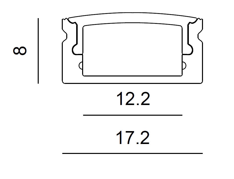Profilo in alluminio da superficie per striscia LED con diffusore opale di 2m. Tappi e clip di fissaggio inclusi.