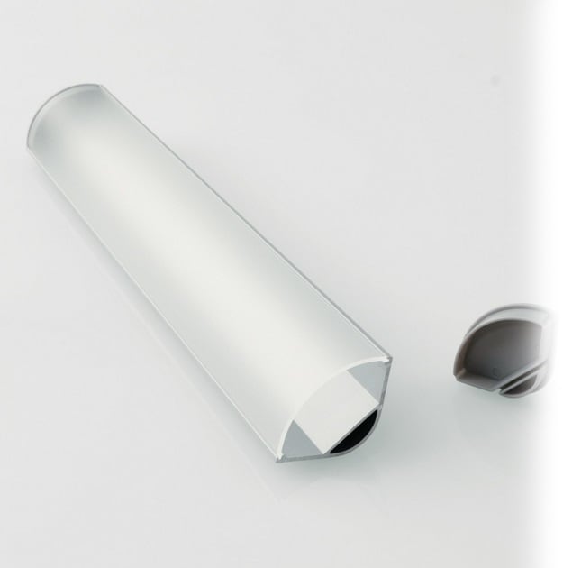 Profilo in alluminio angolare per striscia LED con diffusore trasparente, opale o acidato di 2m. Emissione luce a 45°. Tappi inclusi. Forare il profilo per il fissaggio a parete.