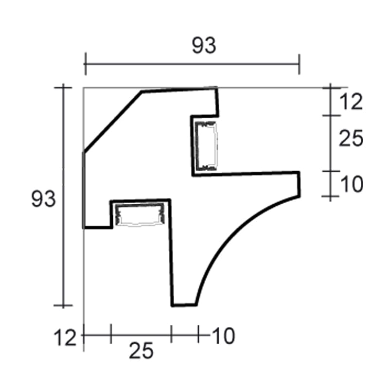 Profilo prefinito angolare in gesso, per installazione verticale o orizzontale, effetto bi-emissione. Elemento completo di due profili in alluminio per applicare due strisce LED, modello 80100. Chiusure laterali da effettuare durante il montaggio. n.barre: 2. 1000mm. 3.10Kg.