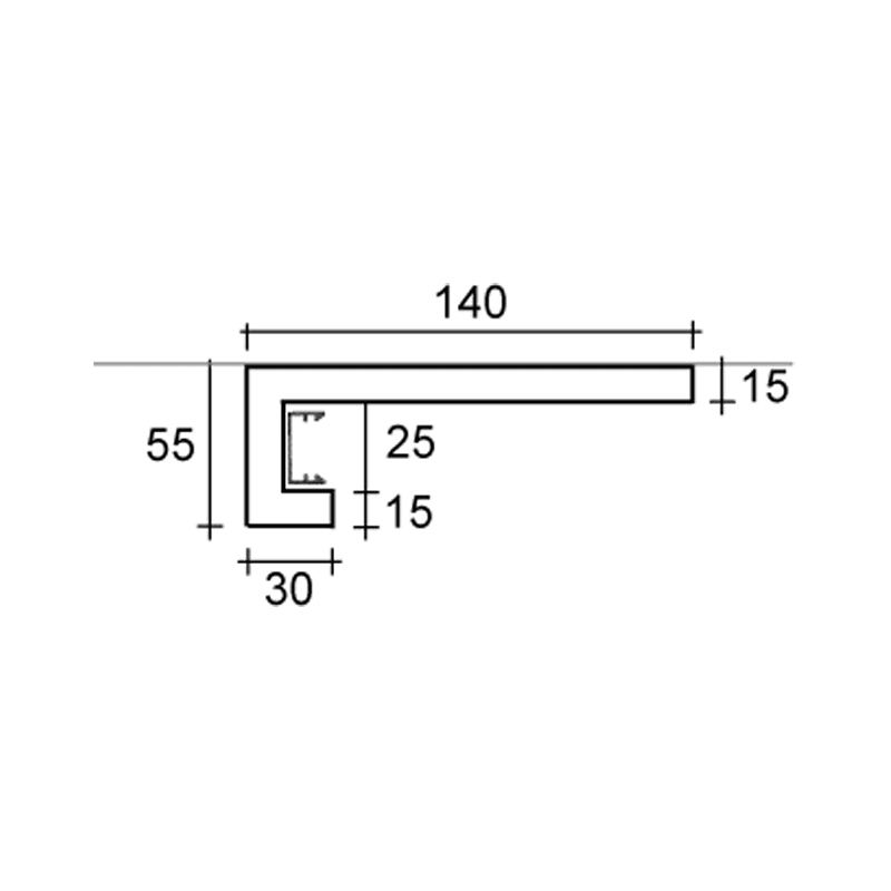 Profilo prefinito in gesso, per installazione a parete, soffitto o come zoccolino, effetto mono-emissione. Elemento completo di profili in alluminio per applicare una striscia LED, modello 80100. Chiusure laterali da effettuare durante il montaggio. n.barre: 1. 1000mm. 3.9Kg.
