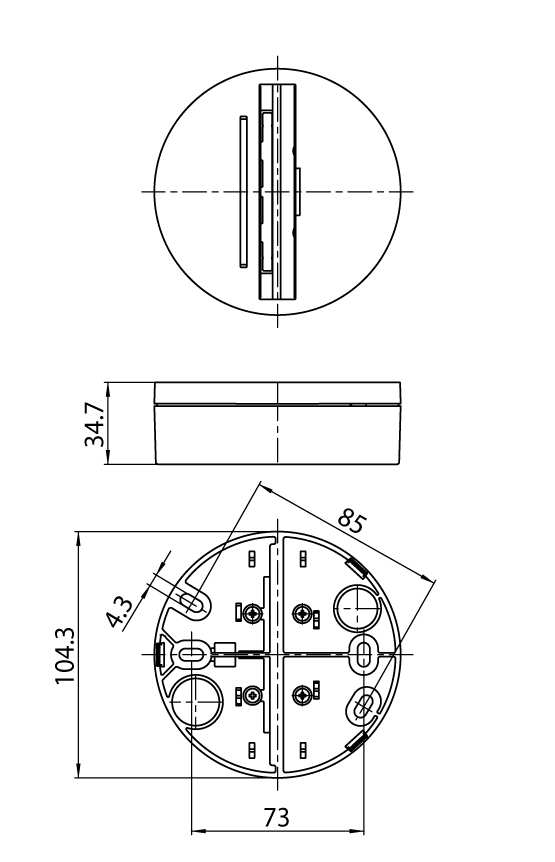 Basetta in policarbonato a plafone DALI + trifase, per fissaggio proiettori senza utilizzo del binario. Colore: Bianco. Carico elettrico: 16A-440V 1A-50V. Per installazione a controsoffitto aggiungere cod.S52/.