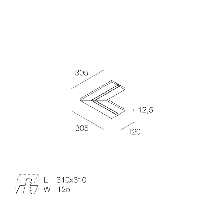 Profilo idoneo per strip LED, moduli micro ottiche e moduli binario, tagliabile in opera, per realizzare composizioni di luce incassate nel cartongesso. Corpo in cartongesso di spessore 12,5 mm da lastra standard o HYDRO (a ridotto assorbimento di acqua,utilizzabile in ambienti con umidit? relativa costante dell?aria ?70%). Profilo dissipante in lega di alluminio anodizzata naturale e schermo di protezione a filo in PMMA opale inclusi. Strip LED, moduli micro ottiche, moduli binario e alimentatore elettronico 24Vdc remoto da ordinare a parte. Non esporre a intemperie o luce solare diretta e non inserire in materiale isolante.