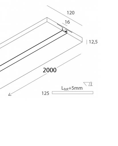 Profilo per Strip LED tagliabile in opera, per realizzare linee di luce incassate nel cartongesso. Corpo in cartongesso di spessore 12,5 mm da lastra standard. Profilo dissipante in lega di alluminio anodizzata naturale e schermo di protezione in PMMA opale inclusi. Strip LED e alimentatore elettronico 24Vdc remoto da ordinare a parte. Non esporre a intemperie o luce solare diretta e non inserire in materiale isolante.