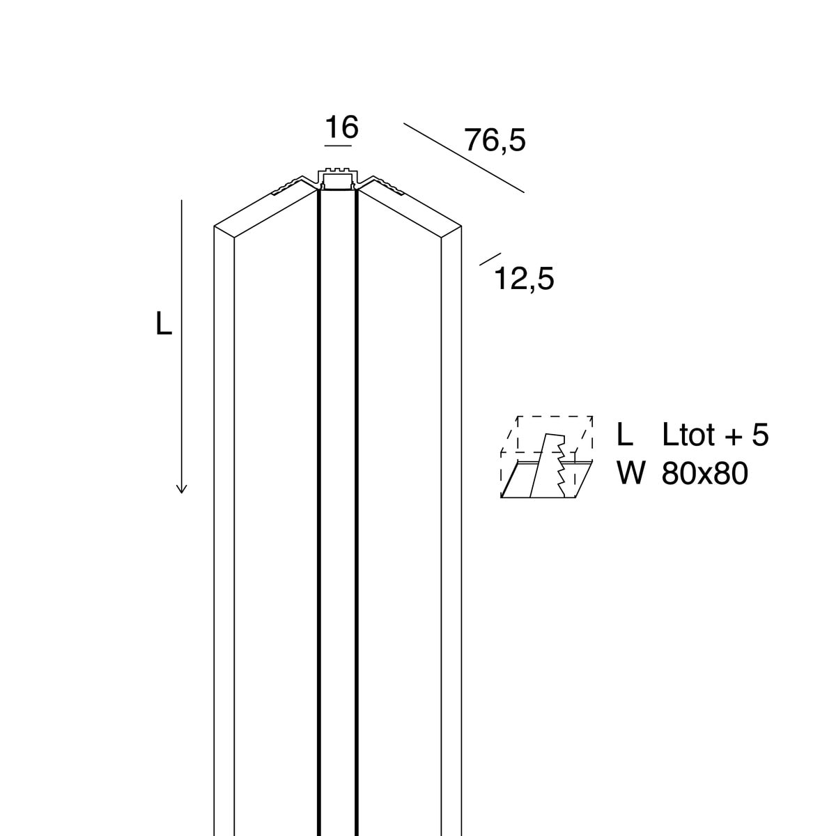 L-16 EDGE profilo lineare per spigolo interno non installabile direttamente su muratura per Strip LED tagliabile in opera, per realizzare linee di luce incassate nel cartongesso. Corpo in cartongesso di spessore 12,5 mm da lastra standard. Profilo dissipante in lega di alluminio anodizzata naturale e schermo di protezione in PMMA opale inclusi. Strip LED e alimentatore elettronico 24Vdc remoto da ordinare a parte. Non esporre a intemperie o luce solare diretta e non inserire in materiale isolante. (versione HYDRO)