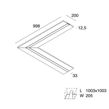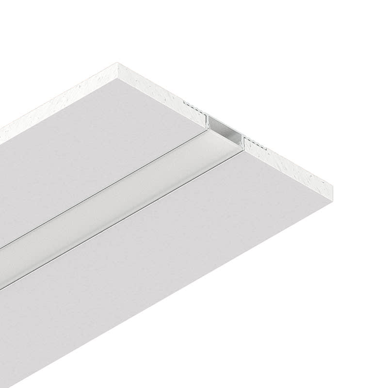 L-33: Profilo lineare per Strip LED tagliabile in opera, per realizzare linee di luce incassate nel cartongesso. Corpo in cartongesso di spessore 12,5 mm da lastra standard. Profilo dissipante in lega di alluminio anodizzato naturale e schermo di protezione in PMMA opale inclusi. Strip LED e alimentatore elettronico 24Vdc remoto da ordinare a parte. Non esporre a intemperie o luce solare diretta e non inserire in materiale isolante.
