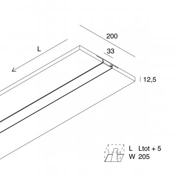 L-33: Profilo lineare per Strip LED tagliabile in opera, per realizzare linee di luce incassate nel cartongesso. Corpo in cartongesso di spessore 12,5 mm da lastra HYDRO (a ridotto assorbimento di acqua, utilizzabile in ambienti con umidit? relativa costante dell?aria ?70%). Profilo dissipante in lega di alluminio anodizzato naturale e schermo di protezione in PMMA opale inclusi. Strip LED e alimentatore elettronico 24Vdc remoto da ordinare a parte. Non esporre a intemperie o luce solare diretta e non inserire in materiale isolante.