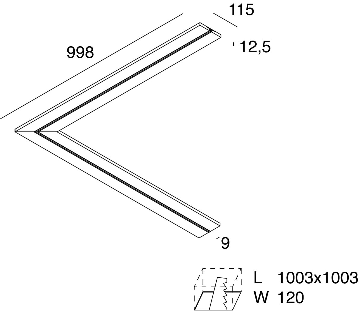 L-09: PROFILO ANGOLARE 90? per Strip LED tagliabile in opera, per realizzare linee di luce incassate nel cartongesso. Corpo in cartongesso di spessore 12,5 mm da lastra standard. Profilo dissipante in lega di alluminio anodizzato naturale e schermo di protezione in PMMA opale inclusi. Strip LED e alimentatore elettronico 24Vdc remoto da ordinare a parte. Non esporre a intemperie o luce solare diretta e non inserire in materiale isolante.
