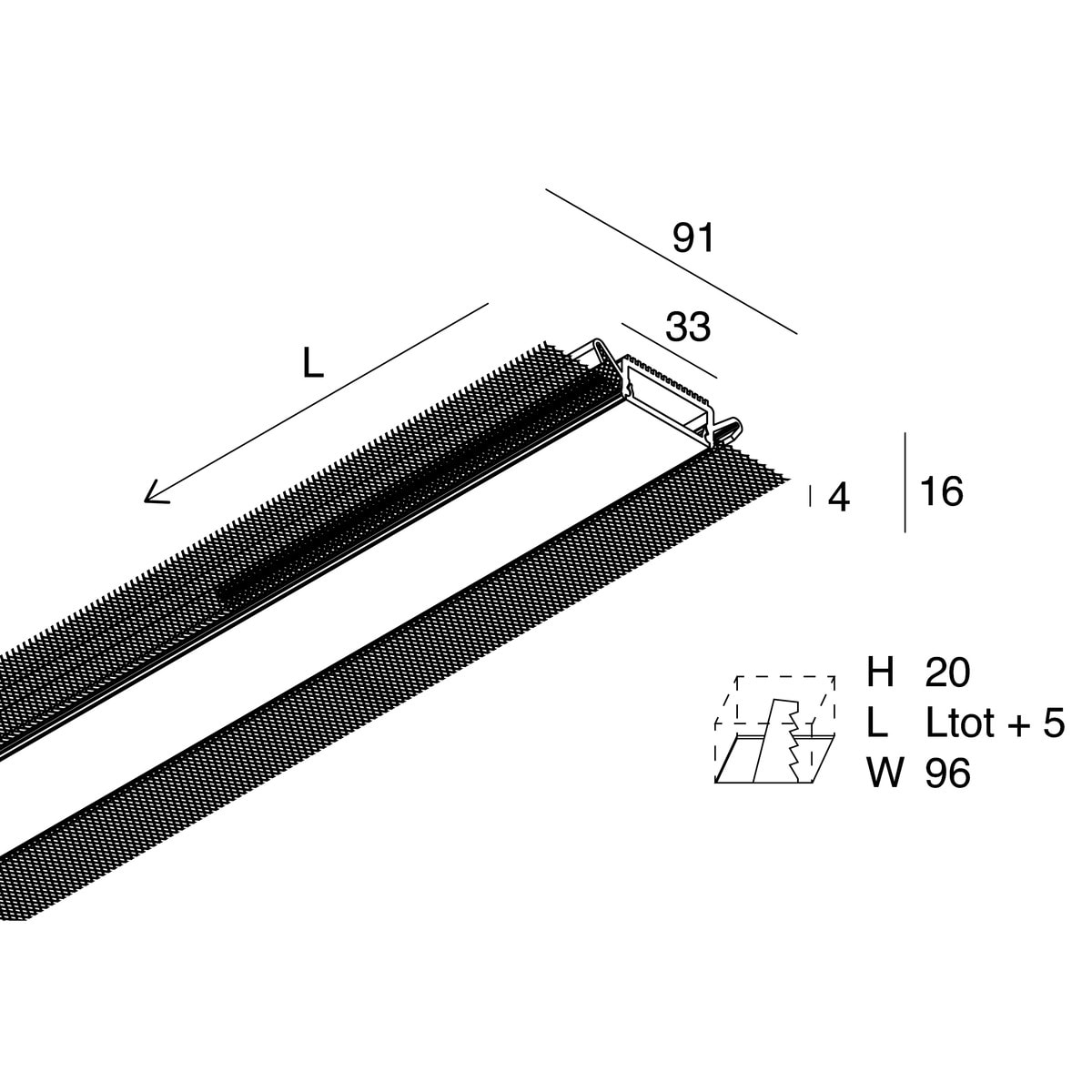 PROFILO LINEARE: Profilo per Strip LED tagliabile in opera, per realizzare linee di luce incassate in muratura. Profilo tagliabile in opera in lega di alluminio anodizzata naturale e rete di armatura porta-intonaco in acciaio zincato. Schermo di protezione in PMMA opale incluso. Strip LED e alimentatore elettronico remoto da ordinare a parte. Non esporre a intemperie o luce solare diretta e non inserire in materiale isolante.