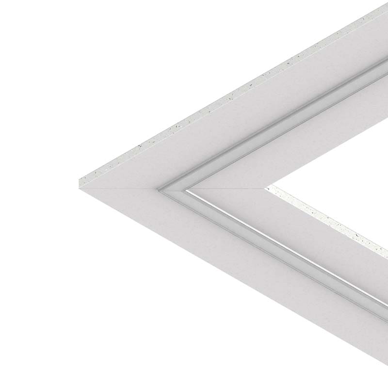 L-16 LOW / Profilo angolare 90? per strip LED tagliabile in opera, per realizzare linee di luce incassate nel cartongesso con finitura ad alto spessore. Corpo in cartongesso di spessore 10mm, profilo dissipante in lega di alluminio anodizzata naturale e schermo di protezione in PMMA opale inclusi. Strip LED e alimentatore elettronico 24Vdc remoto da ordinare a parte. Non esporre a intemperie o luce solare diretta e non inserire in materiale isolante.
