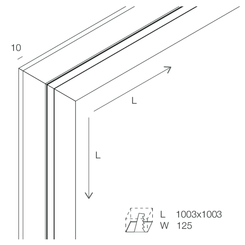 L-16 LOW / Profilo angolare parete-soffitto per strip LED tagliabile in opera, per realizzare linee di luce incassate nel cartongesso con finitura ad alto spessore. Corpo in cartongesso di spessore 10mm, profilo dissipante in lega di alluminio anodizzatanaturale e schermo di protezione in PMMA opale inclusi. Strip LED e alimentatore elettronico 24Vdc remoto da ordinare a parte. Non esporre a intemperie o luce solare diretta e non inserire in materiale isolante.