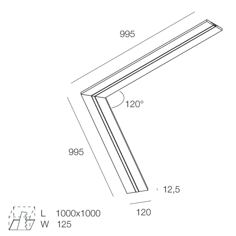Profilo per Strip LED tagliabile in opera, per realizzare linee di luce incassate nel cartongesso. Corpo in cartongesso di spessore 12,5 mm da lastra standard o HYDRO (a ridotto assorbimento di acqua, utilizzabile in ambienti con umidità relativa costante dell’aria ≤70%). Profilo dissipante in lega di alluminio anodizzata naturale e schermo di protezione in PMMA opale inclusi. Strip LED e alimentatore elettronico 24Vdc remoto da ordinare a parte. Non esporre a intemperie o luce solare diretta e non inserire in materiale isolante.